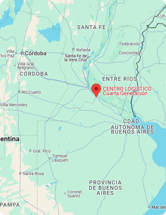 Estamos ubicados estratégicamente sobre Ruta Nacional N9 e intersección Ruta Provincial 10S (acceso puente Theobald) 33°19’43.7″S 60°18’36.2″W. A solo 2.5km del Ferrocarril Bartolome Mitre y a 12km de Zona Franca.